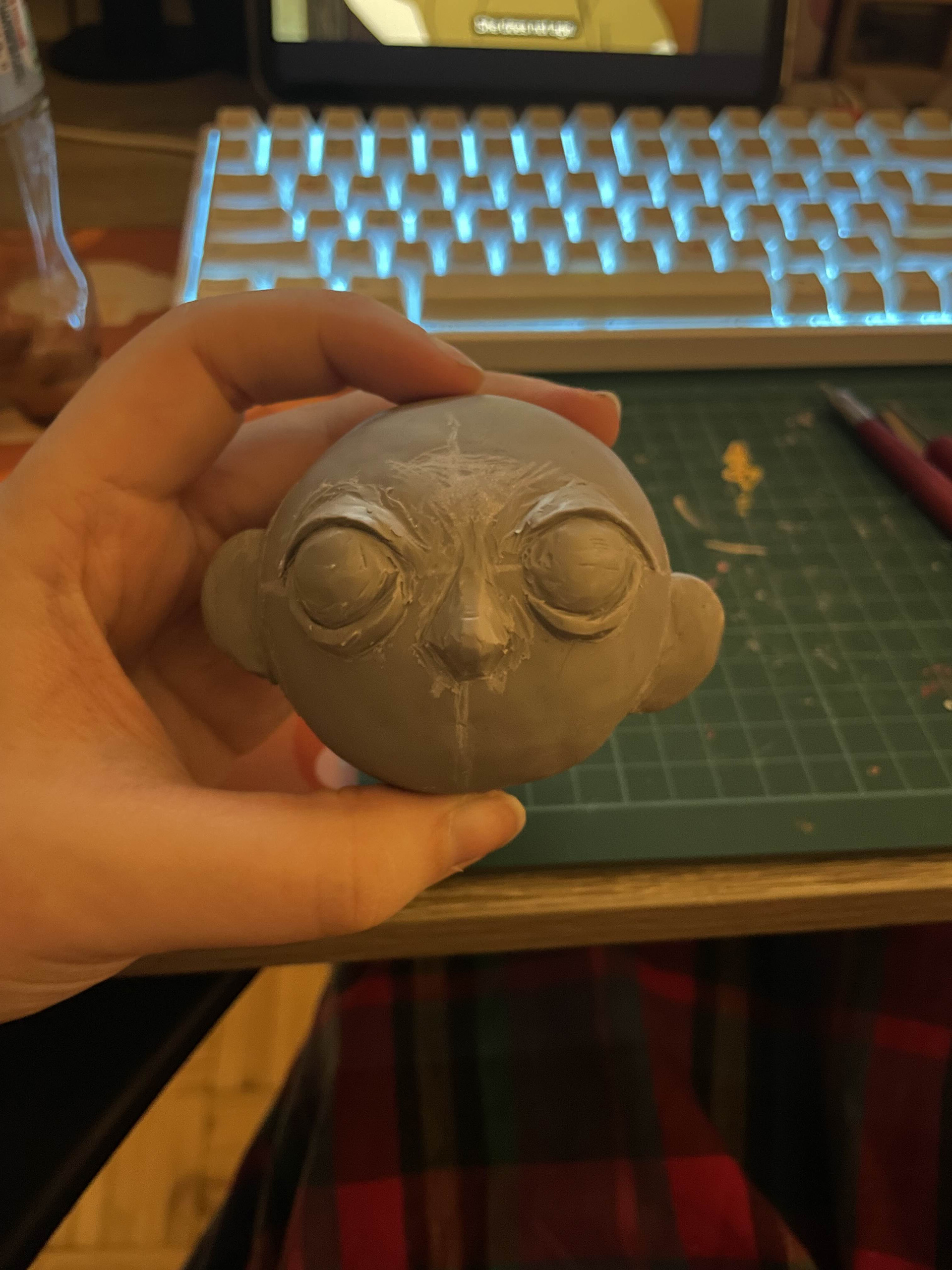 Hand cut oak wood blocks, hand cut balsa wood blocks square brass stock, braided aluminum wire, foil, apoxie sculpt, super sculpey, cotton, liquid latex, gouache, powder blush, upholstery foam, super glue, brushed out and gelled human hair.