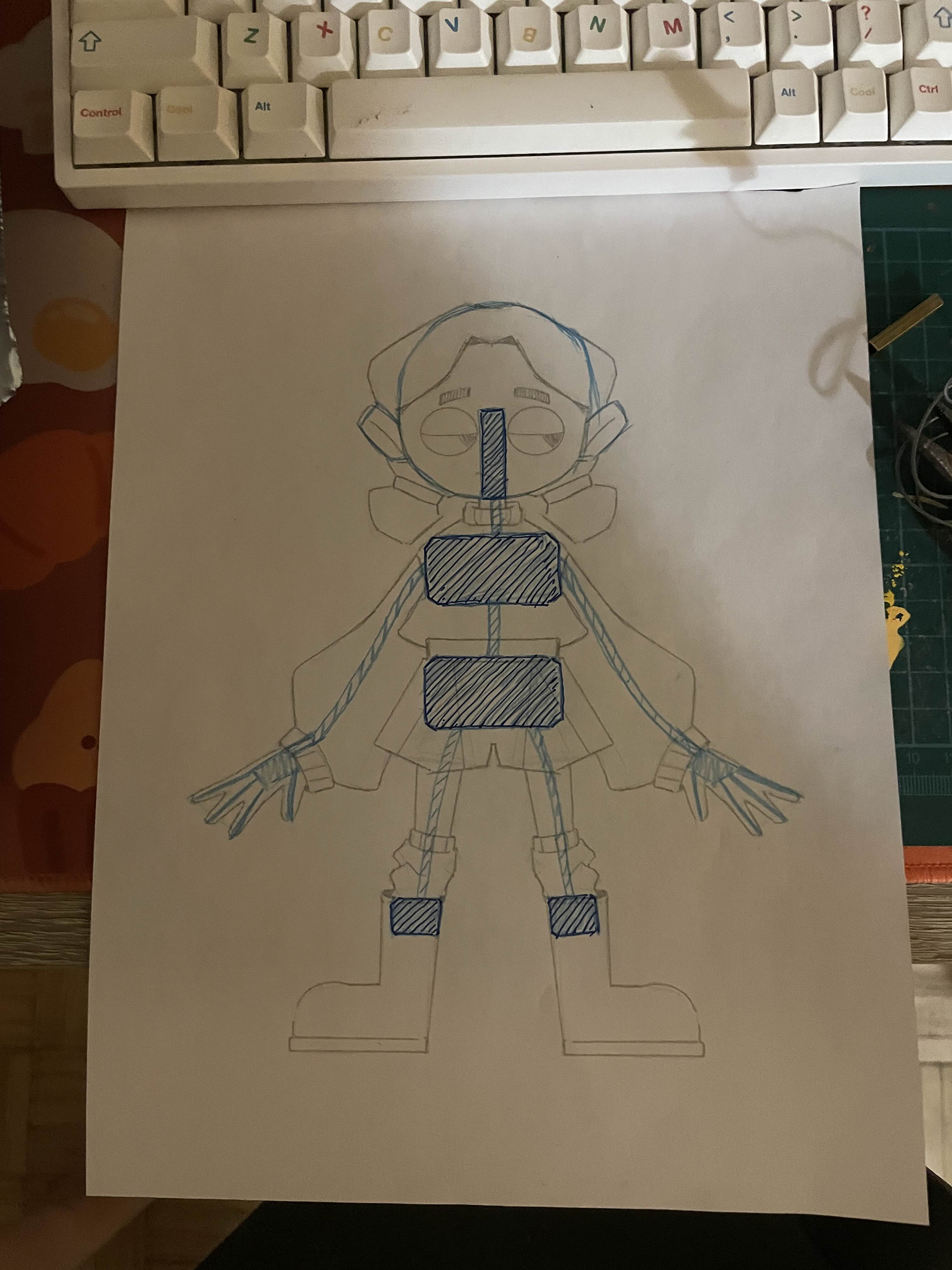 Costuming: hand sewn patterns, with braided aluminum boning in cuffs and collars to hold shape.